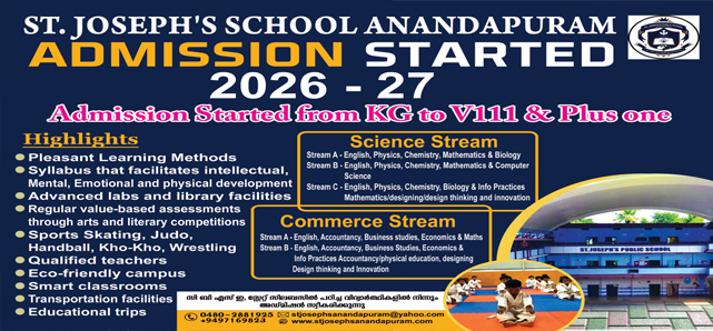 St. Joseph’s State School was founded in 1984 It was transformed into Public School (CBSE) in May 2012. It is run by Udaya CMC Educational Society Irinjalakuda. Formed by the members of Congregation of Mother of Carmel(CMC) The First Women Congregation In Kerala.